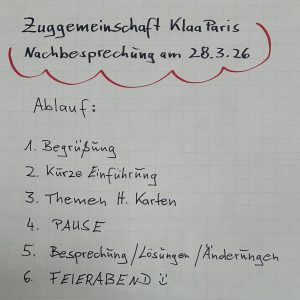 Ende März traf sich der Gesamtvorstand der Zuggemeinschaft zur Klausur-Tagung, oder Jour Fix – oder auch einfach Nachbesprechung genannt.