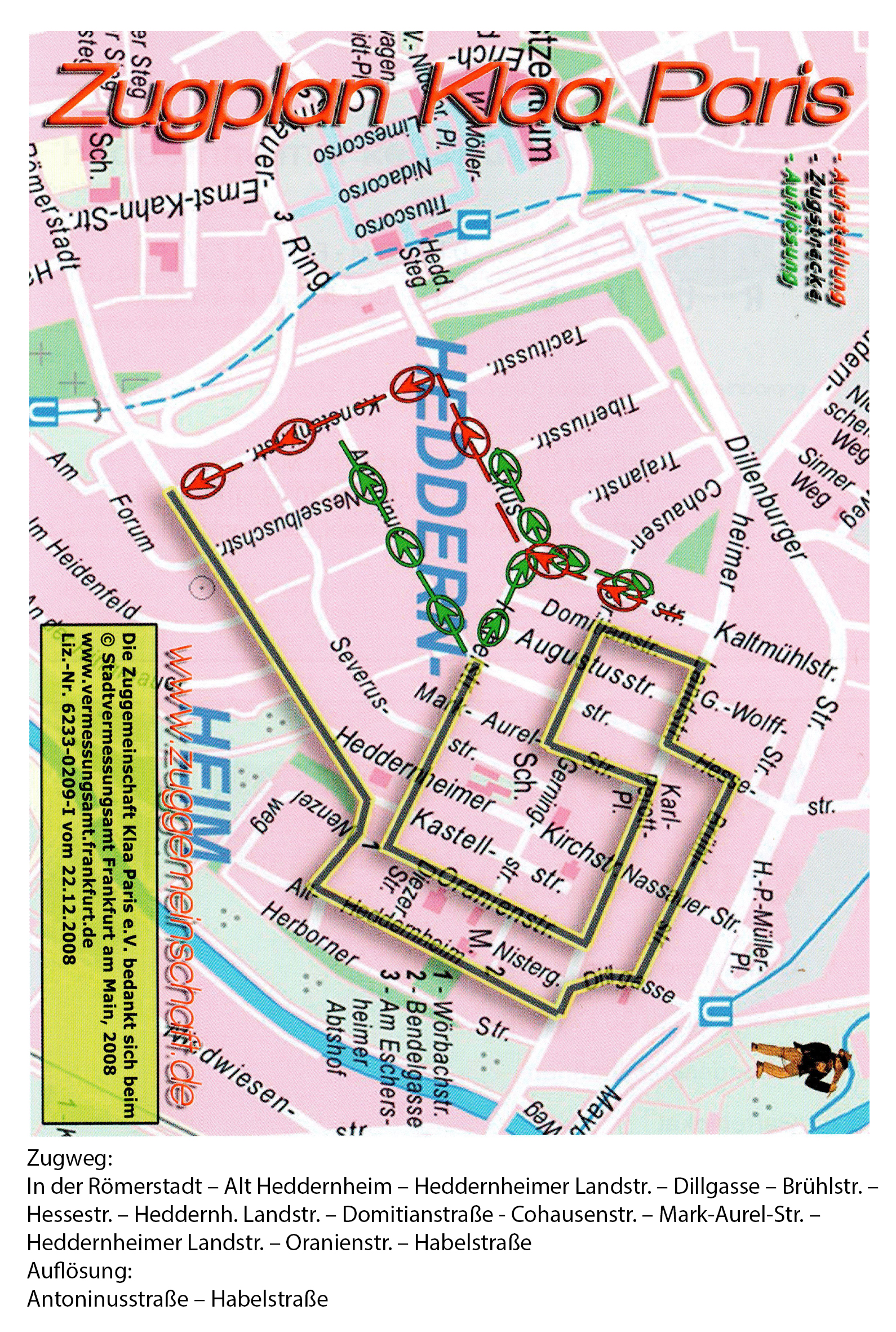 hatten die Heddernheimer ihre Fastnachtszug-Premiere. Die Initiatoren waren zwei Handwerksburschen. Sie kamen von der damals üblichen Wanderschaft in ihr Heimatdorf zurück. Hier waren alle in freudiger Stimmung, denn die erste Gemeindepumpe sollte eingeweiht werden. Das mußte entsprechend gefeiert werden. Die Heddernheimer feierten zweimal im Jahr: an Kerb und an Fastnacht. Die Kerb war vorbei, so bot sich die Fastnacht an. Die Handwerksburschen hatten in Mainz den närrischen Umzug miterlebt. Nun machten sie ihren Mitbürgern den Vorschlag, ein nachgebautes Brunnenmodell in einem Festzug – aber einem närrischen – durch die Dorfstraßen zu fahren. Begleitet werden sollte dieser Umzug von maskierten Narren und fröhlicher Musik. Begeistert wurde der Vorschlag von den Dörflern aufgenommen. Am Fastnachtsdienstag 1839 zog der närrische Zug durch Heddernheim. An den Straßenecken standen Festredner, um den närrischen Magistrat und die Fassenacht zu loben. Das närrische Publikum jubelte und die ganze Sache geriet zu einem Volksfest. Der Fassenachtszug und die Straßenfastnacht waren geboren. Noch heute wird – der Tradition gemäß – ein Modell dieser Gemeindepumpe, im Dialekt liebevoll “Gemaa-Bumb” genannt, im Fastnachtszug mitgeführt. (Quelle: H.P.Müller; Klaa Paris – Narrenparadies)